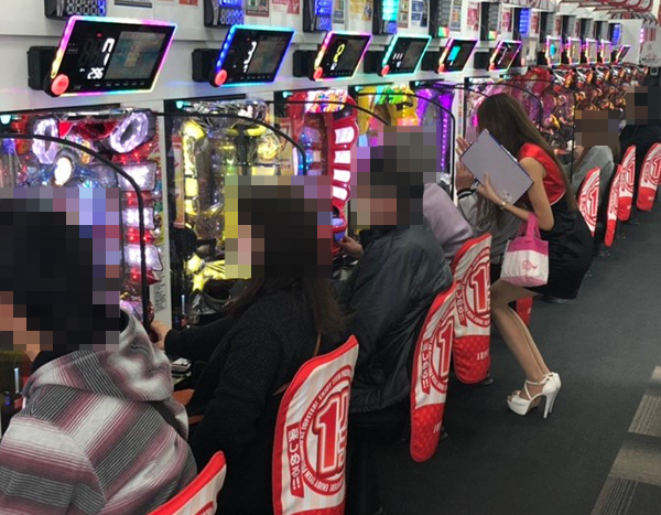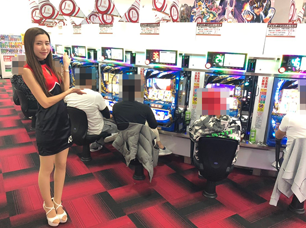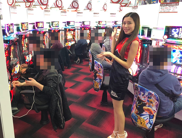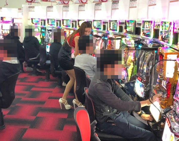 パチンコとパチスロの両方でプレイヤーたちとコミュニケーションをとっていた咲ちゃん。