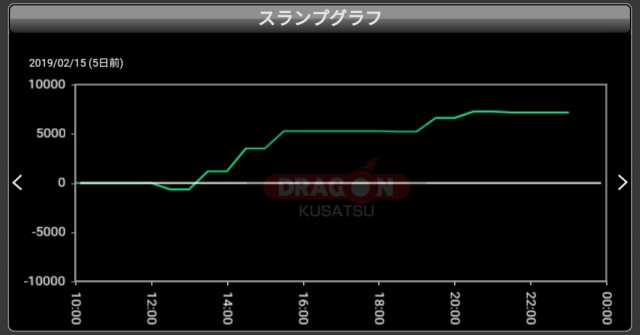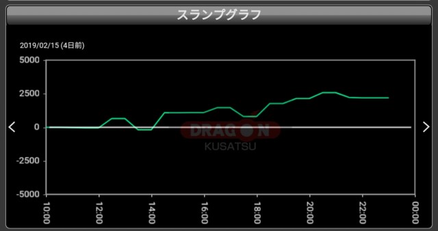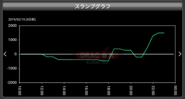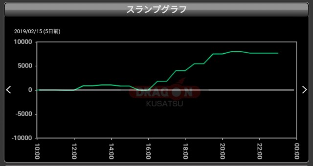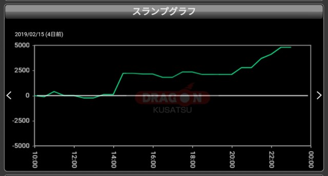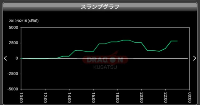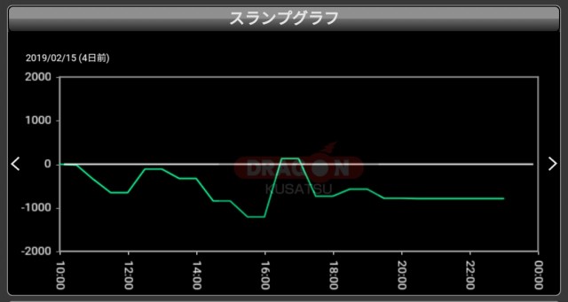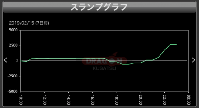 しかし! ぱちタウンアプリの「ドラゴン草津店」データ公開にアクセスしたところ、『バジリスク〜甲賀忍法帖〜絆』のスランプグラフで優秀だったのは上記2台ではなく