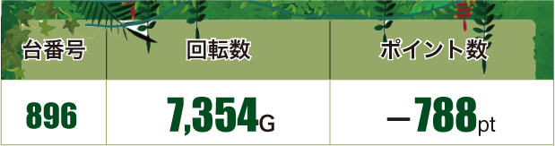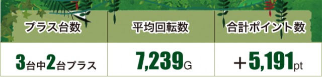 浮き沈みが激しい機種ながら、3台とも回転数は7,000G前後。平均差玉も1,730pt。