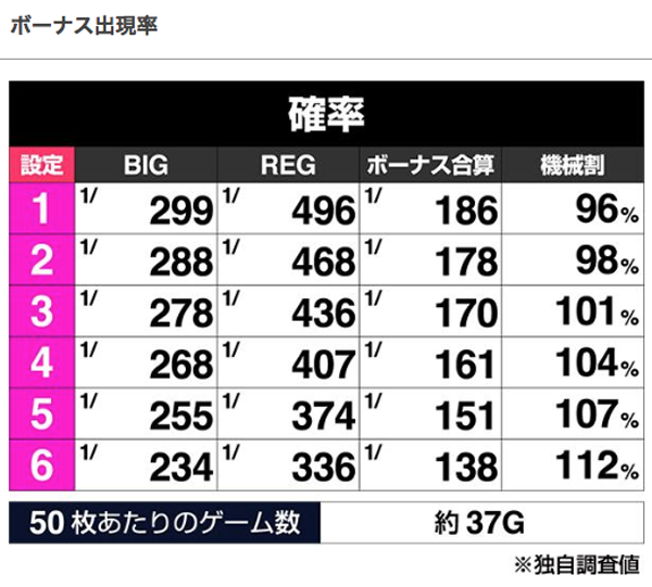 ボーナス確率が設定推測の軸。サンプルとなるゲーム数を増やして、精度を高めたい。