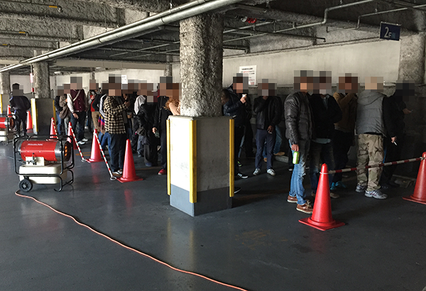 開店前におこなわれた入場抽選には約70名が参加。一般入場のプレイヤーも合わせると、100名以上を超える大勢のプレイヤーが列を作っていた。
