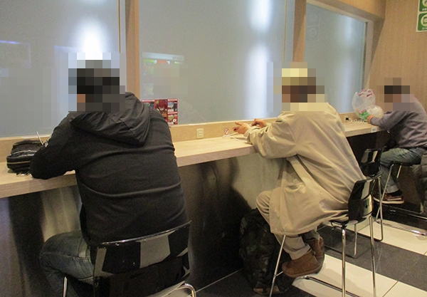 パチンコが設置されている2階には、遊技台から離れた場所にレストスペースがある。落ち着いた空間となっているだけでなく、自由に利用できるコンセントもあり、便利に思えた。