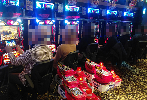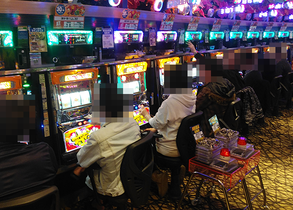 1円パチンコと5円パチスロのどちらにも活躍をしているプレイヤーがおり、じっくりと遊技を楽しめている様子であった。