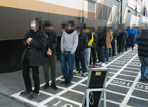 朝イチから40名以上のプレイヤーが集合。楽しそうに会話をしているシーンもみられ、開店までの時間を楽しく過ごしているように思えた。