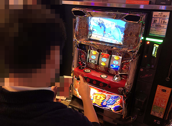 活気づくパチスロコーナーにて、龍の存在を探っていると「押忍!サラリーマン番長」でとくに大きい盛り上がりが感じられた。