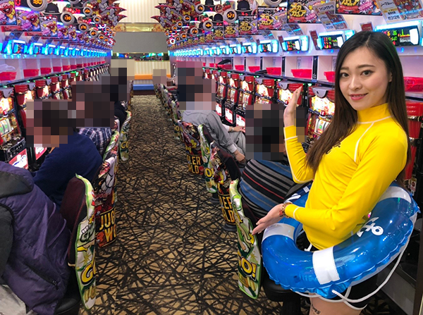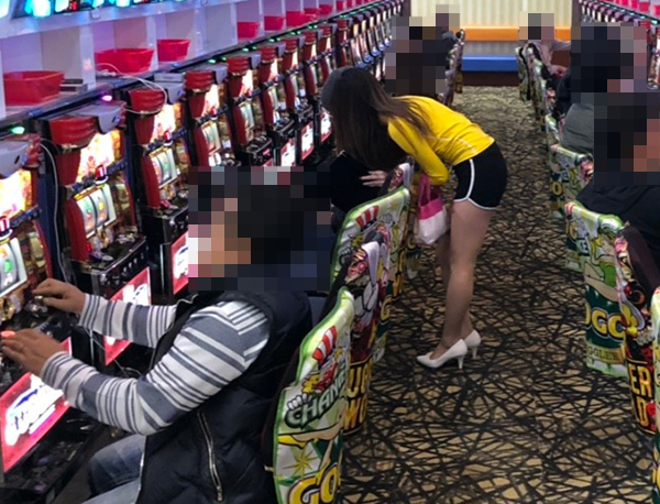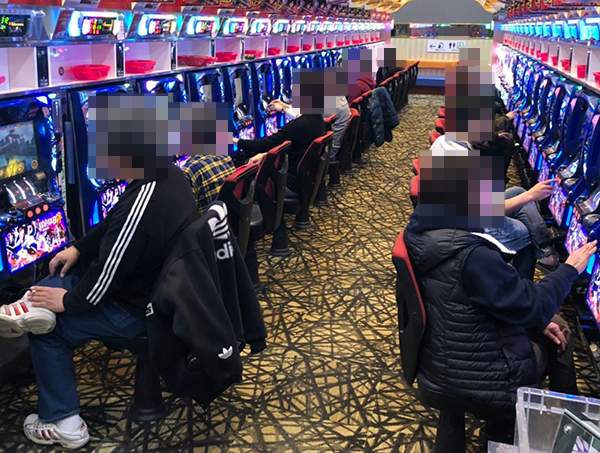 パチスロの状況をうかがうと、たくさんの機種に笑顔をみせるプレイヤーの姿がありました。