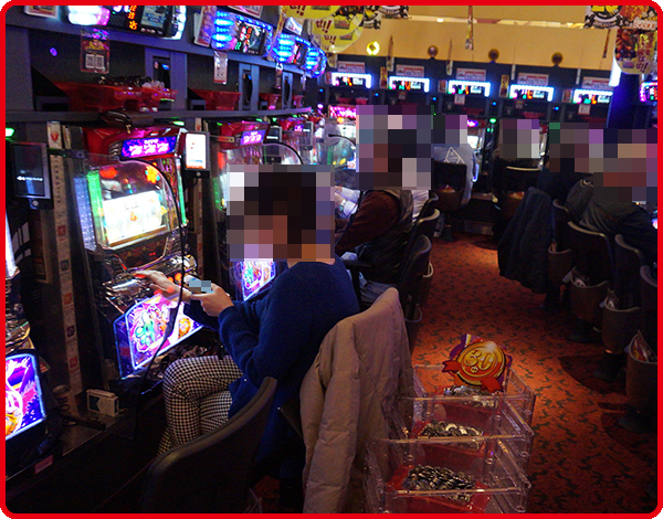 パチンコの「ぱちんこCR真・北斗無双」や「CRぱちんこ AKB48-3 誇りの丘」などにみられた光景も華やか! プレイヤーたちがうれしそうにハンドルを握っていたことも覚えている。
