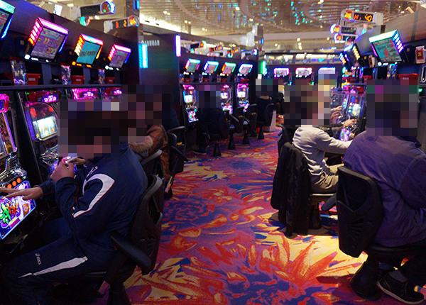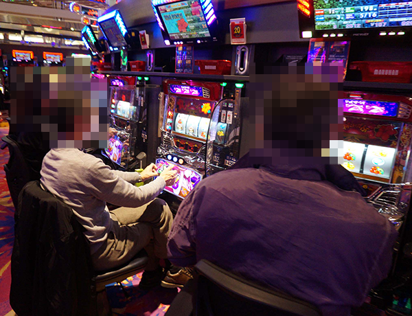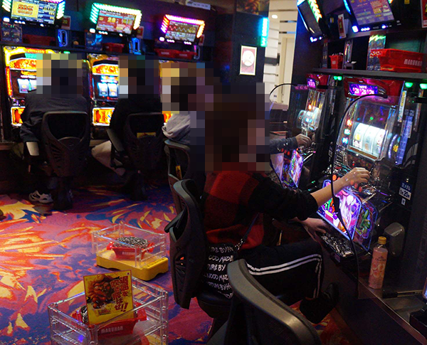 円形やアーチ状に遊技台が設置されており、レイアウトからもこだわりが感じられるパチスロコーナーを進んでいくと、さまざまな場所に笑顔が広がっていた。