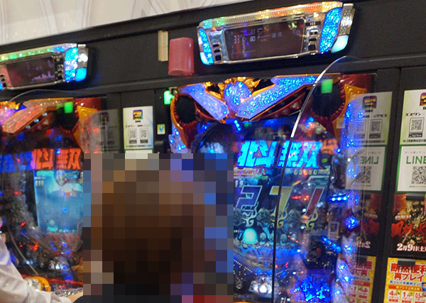 なかでも、思わず足をとめて眺めてしまうほどに活気づいていたのは22台が設置されている「ぱちんこCR真・北斗無双」。