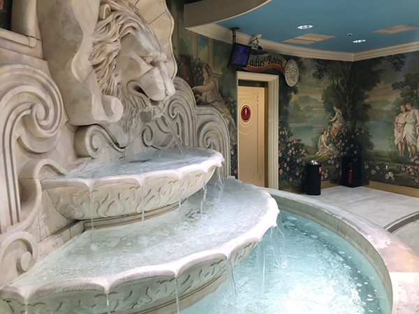 また、トイレの近くに備えられているライオンの顔を形取った噴水や壁画風の壁紙も印象的。ヨーロッパを思わせるような豪華な装飾からは、華やかな雰囲気を味わうことができるイメージだ。