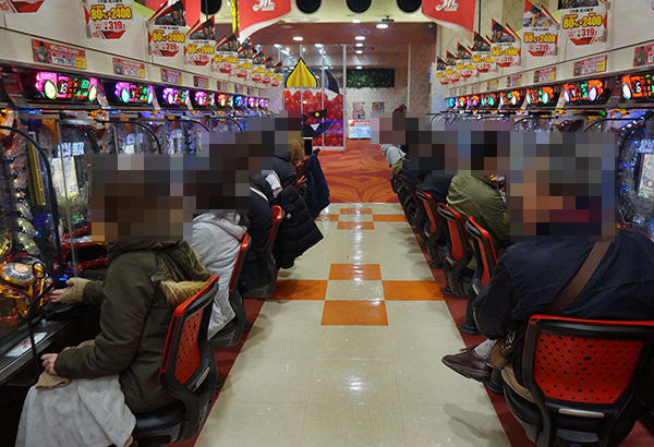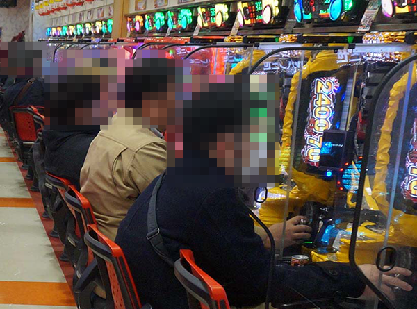 9台ずつが通路をはさんで向かいあう形で設置されているシマは、どちらの列をみても華やかな光景が広がっていた。