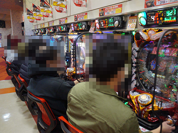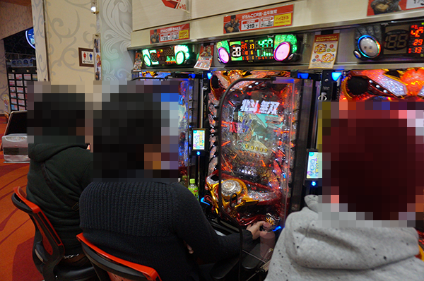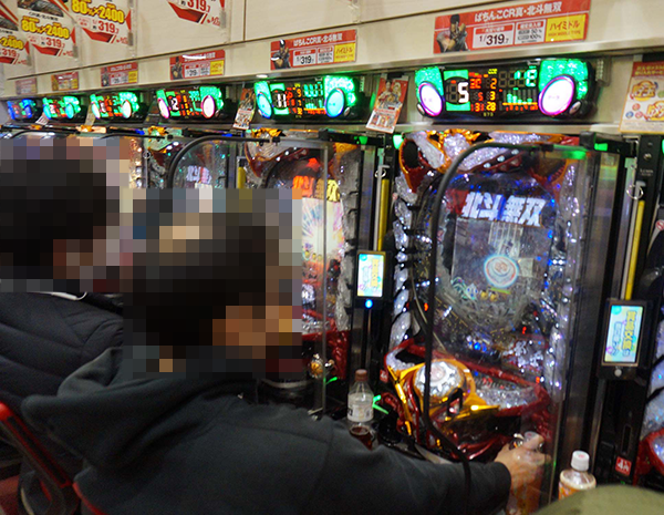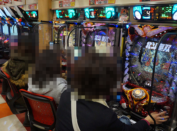 イキイキとした表情で遊技をおこなっているプレイヤーが多く、「ぱちんこCR真・北斗無双」の雰囲気はとても明るい。