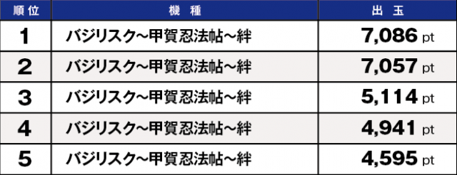 なんと『パチスロ モンスターハンター 月下雷鳴』で、5,000ptオーバーが2台!