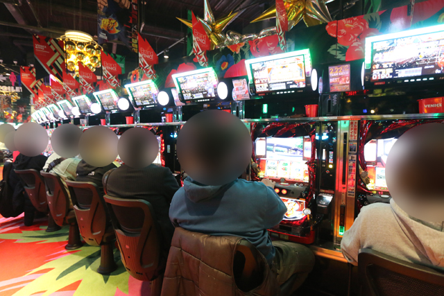 店内は総設置1148台を埋め尽くさんばかりの人、人、人。