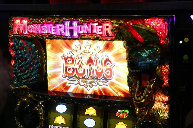 総設置台数324台を誇るパチスロエリアで目立っていたのは、『バジリスク~甲賀忍法帖~絆』や『ゴッド』シリーズ。