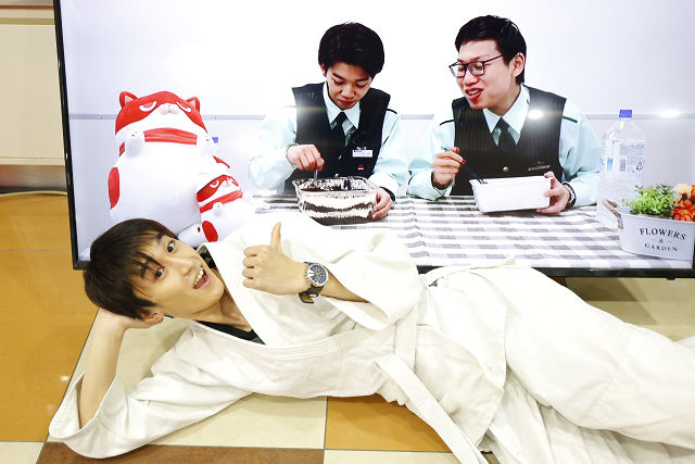 アツき魂を宿すファンが勝負の瞬間を待ち望む中、ノコノコと道着姿で現れたのは「DMMぱちタウン」専属タレント田中逆回転。