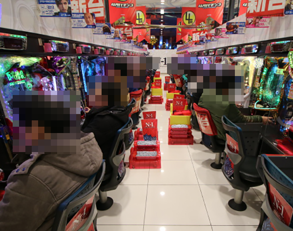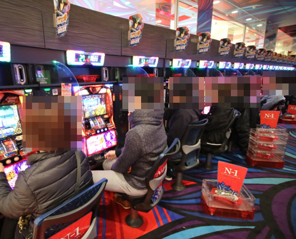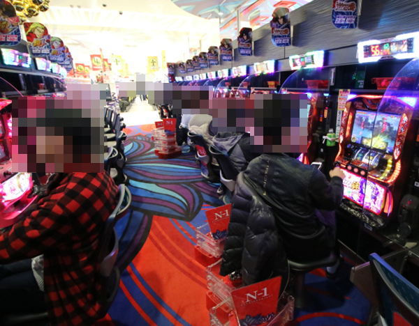 さまざまな機種が導入されているパチンコもにぎやかな状況。