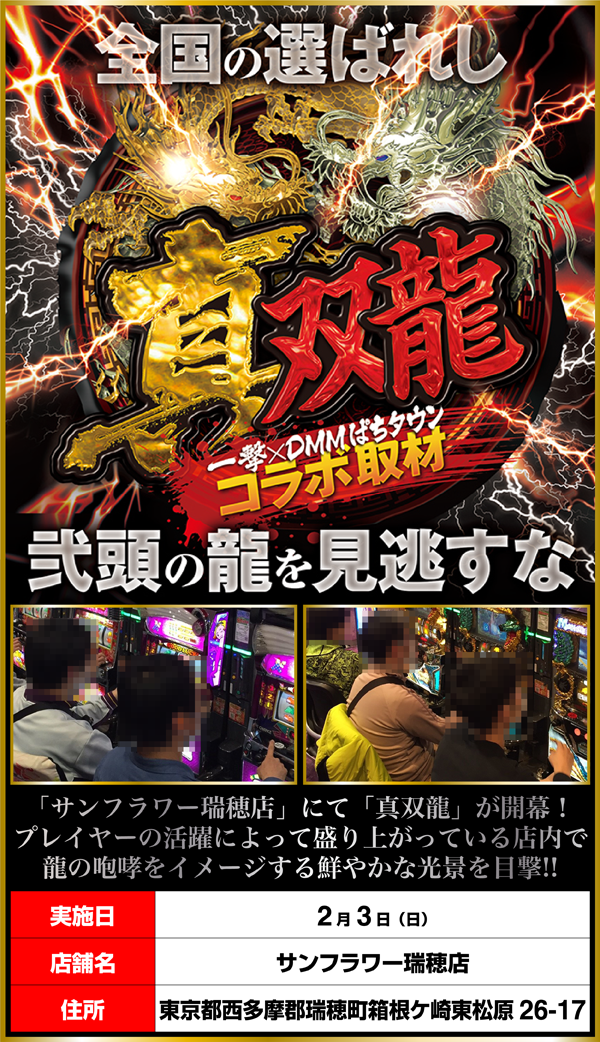 各台計数機が備えられているなど、スムーズに遊技をおこなえるといった「サンフラワー瑞穂店」で「真双龍」を敢行した。