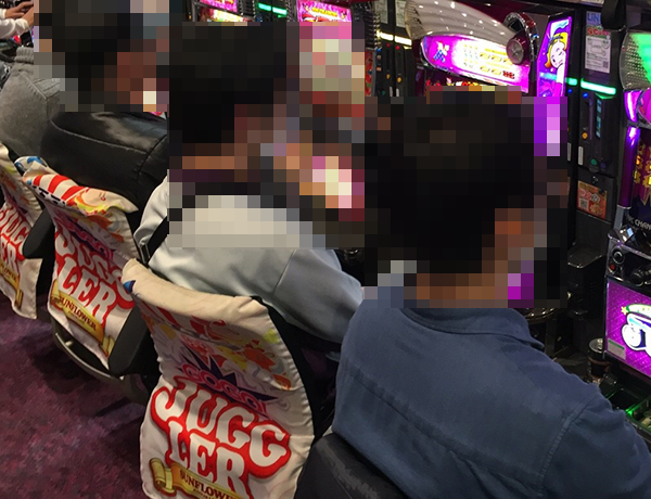 ホールを歩きながら気になったのは、ジャグラーシリーズの稼働率の高さだ。さまざまなシリーズ機がズラリと並んでいるシマは、シンプルな楽しさを堪能しているような姿でほぼ埋め尽くされていた。