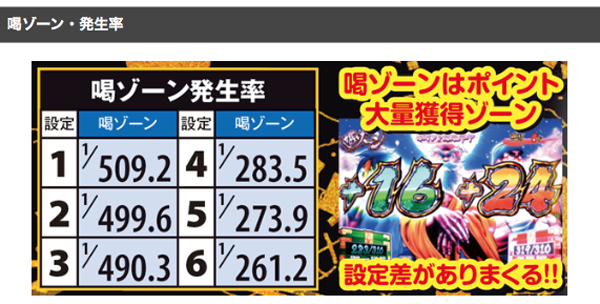 また、大きな設定差が設けられている喝ゾーン確率にも注目しておこう。