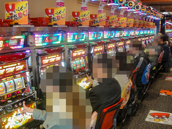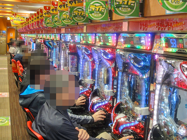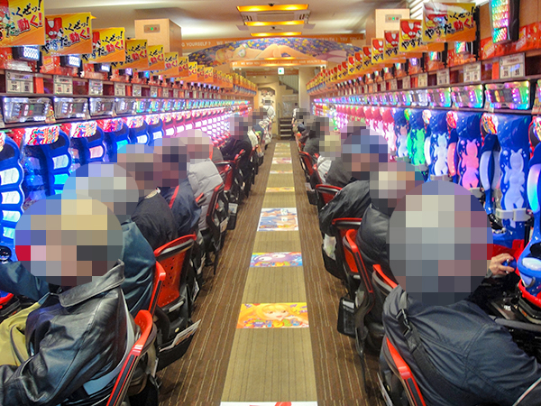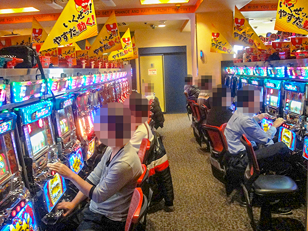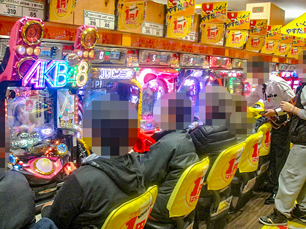 機種構成が魅力的な2円パチスロを見渡すと、ほぼ満席となるほどの支持を得ていた。