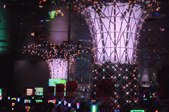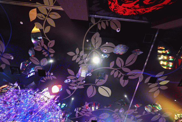 改めて店内を見渡すと、天井まで極彩色に散りばめられたLEDの煌めき、装飾の数々。