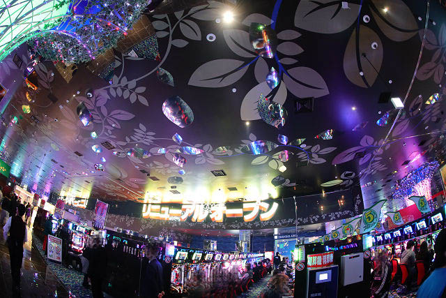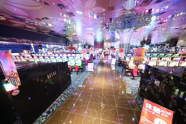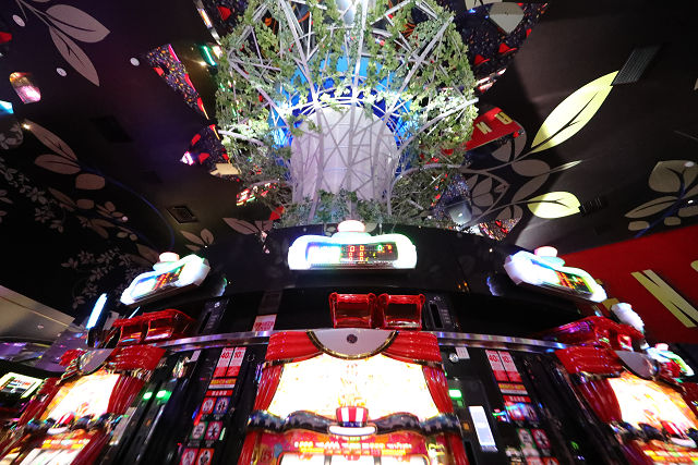 パチンコ・パチスロの島設備、併設される飲食スペースやカフェ、賞品カウンターのレイアウト変更に始まり、店内の空気環境から全ての装飾の変更までなされている。