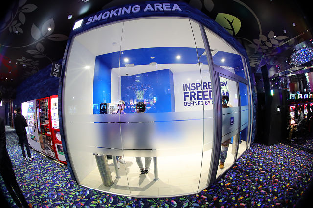 2か所ある喫煙スペース。スペース内も清潔感があり、ゆったりくつろげる。遊技の合間の小休止にはピッタリだ
