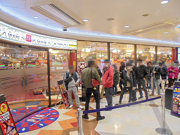 開店前から100人近くのプレイヤーが集合。会話を楽しみながら開店を待つ、実に和やかなシーンを目にしている。