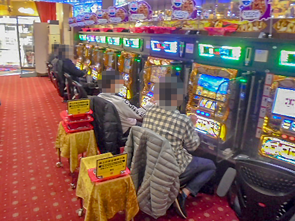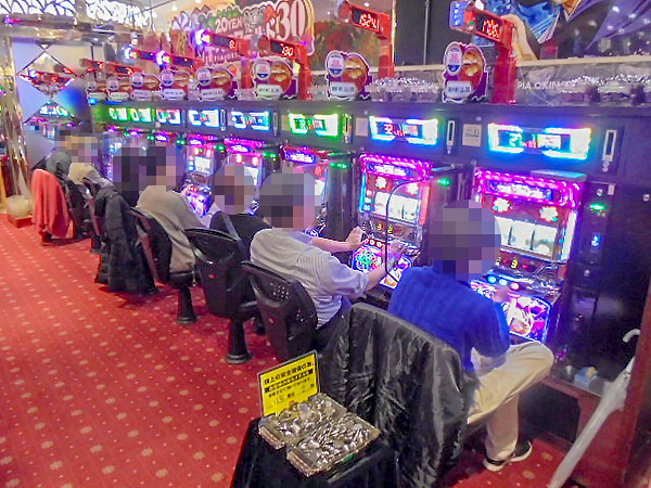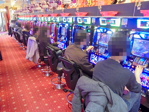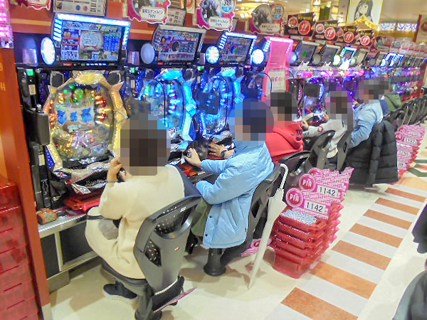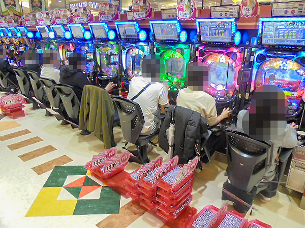 15時半過ぎの4円パチンコをチェックすると「CR真・花の慶次2〜漆黒の衝撃 2400」や「ぱちんこCR聖戦士ダンバイン」、「CRぱちんこ魔法少女まどか☆マギカ」が盛況の様子。各人の満足気な表情が印象に残っている。