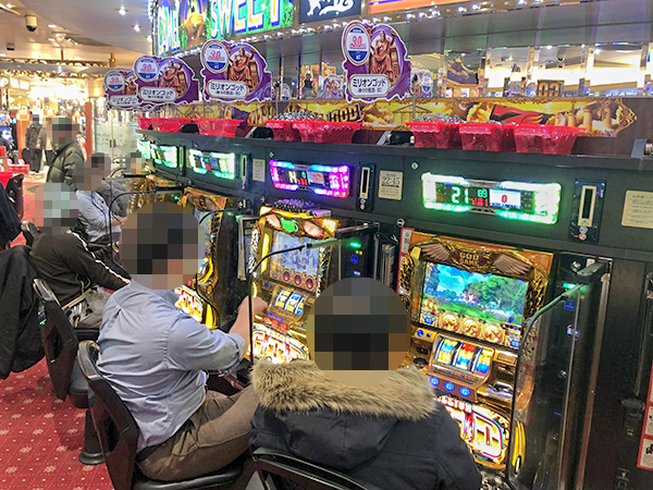 16時半過ぎの4円パチンコでは、「ぱちんこCR真・北斗無双」や「CRぱちんこ冬のソナタ Remember」でプレイヤーが華麗なパフォーマンスを披露。微笑ましいシーンを随所で目にしている。