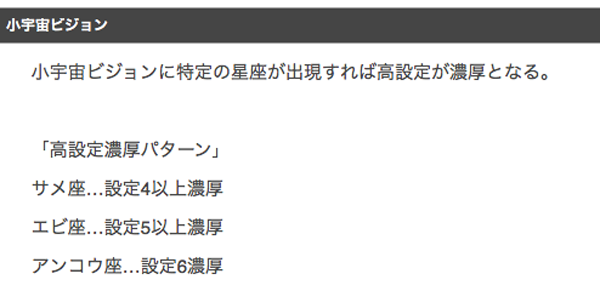 小宇宙ビジョンにサメ座が出現すれば設定4以上、アンコウ座なら設定6が濃厚だ。