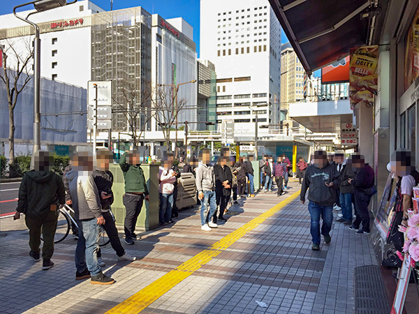 開店前から約130人ものプレイヤーが列を形成。各人とも入店を待ちきれない様子だった。
