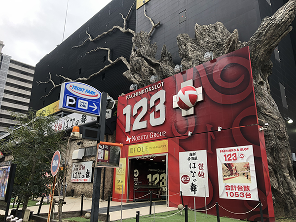 ジャグラーシリーズを中心にたくさんのプレイヤーが遊技を楽しんでいた「123+N東雲店」。