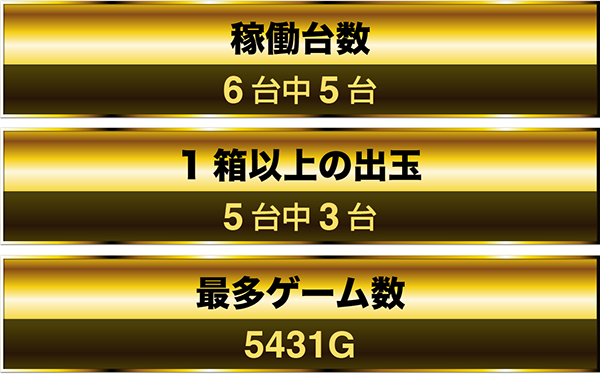 すべての台が2000G以上、楽しまれており、なかには5000Gオーバーのデータも目撃。