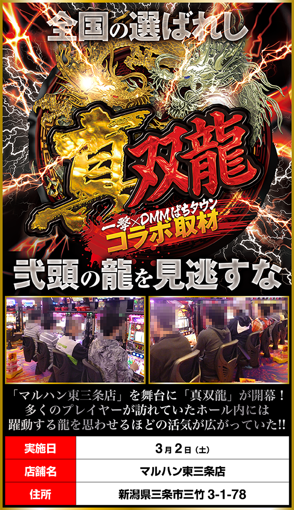 舞台となったのは、東三条駅から徒歩圏内の場所に位置している「マルハン東三条店」。
