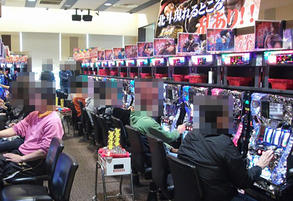 14時を過ぎる頃の20円パチスロでは「パチスロ北斗の拳 強敵」に多くのプレイヤーが集まっており、活気に満ちた光景を確認することができた。