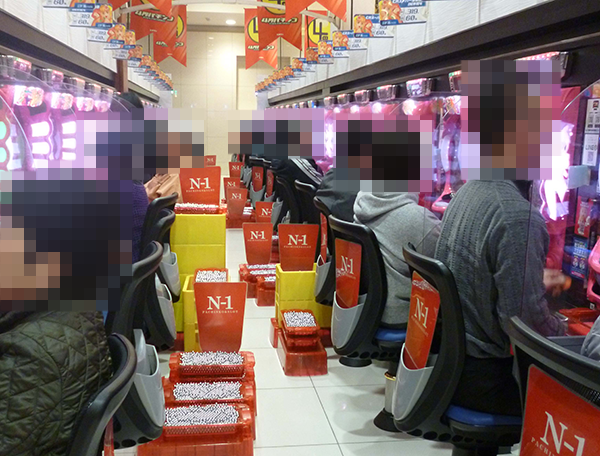 通路や台間が広く設けられたパチンココーナーを進んでいくなかで、とくに印象に残っているのは「CRスーパー海物語IN沖縄4」。理想的ともいえる展開で遊技をおこなっているプレイヤーが多く、シマ全体が活気づいていた。