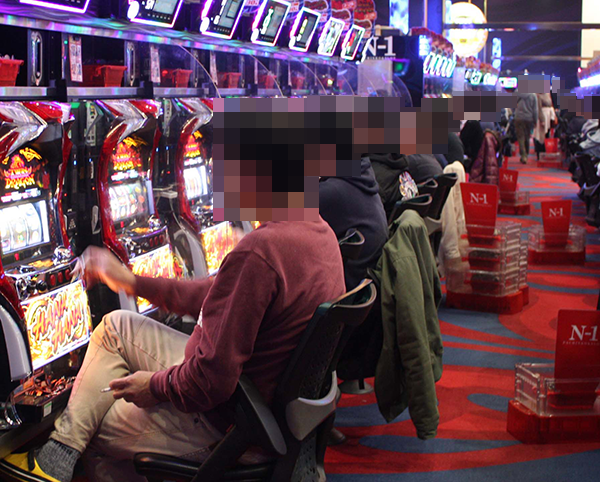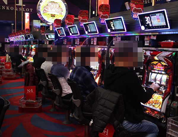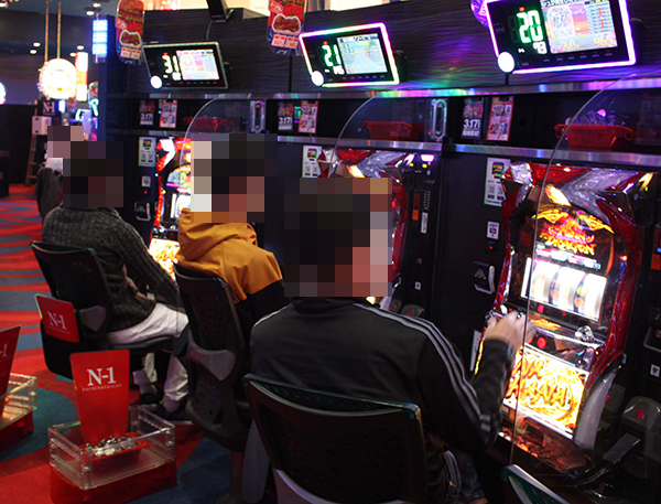 ホール内でトップクラスの設置台数を誇る「ツインドラゴンハナハナ‐30」が高稼働となっていた。機種の性能を最大限まで引き出しているといった姿も多く、シマを包んでいる雰囲気はとても明るい。プレイヤーたちのイキイキとした様子からは、満足感を得ていることも伝わってきた。