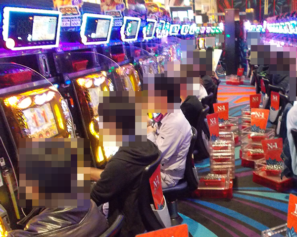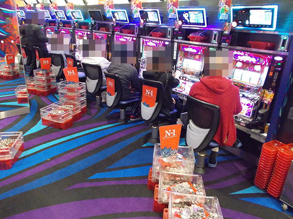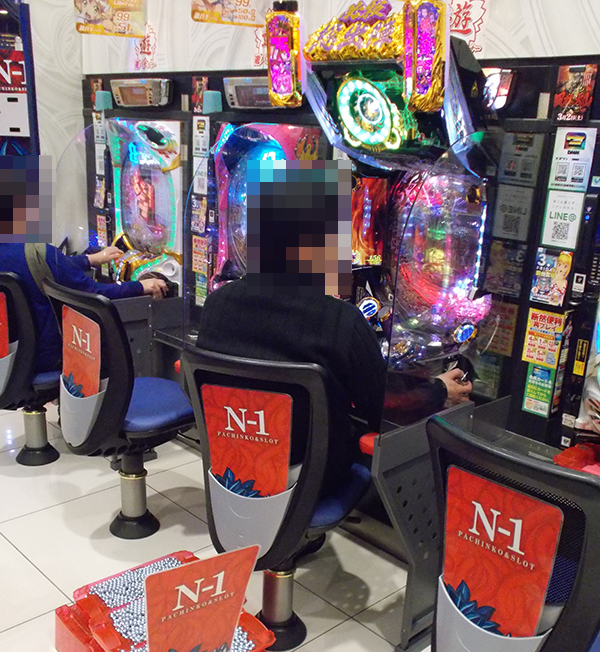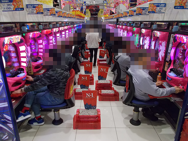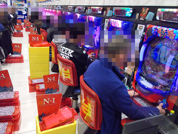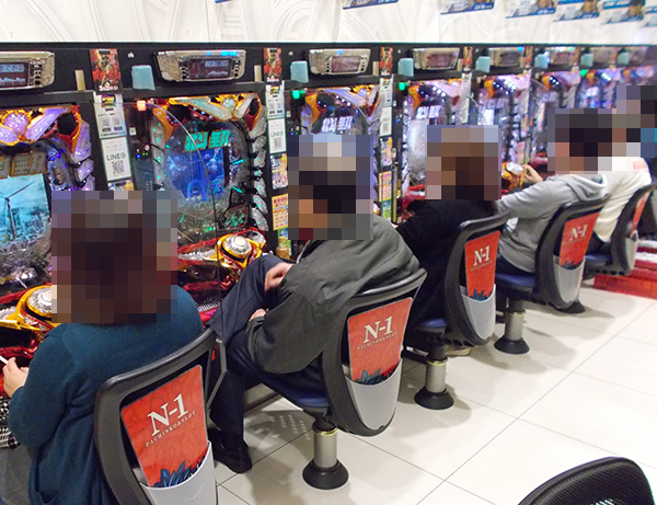 パチンコで遊技をおこなっているプレイヤーも多く、表情は明るい。