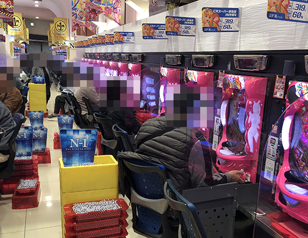 すでに活況となっている店内には笑顔が満開!! イキイキと遊技をおこなっている姿は、見事な太刀さばきを披露している戦国武将のようであった。