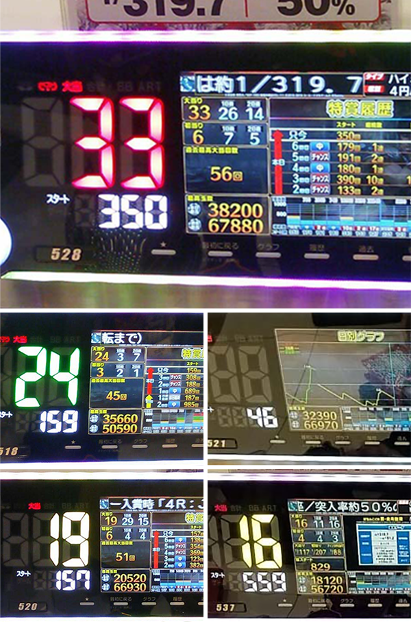 3月8日にパチンココーナーをのぞくと、さまざまな機種に華やかな光景が広がっていた。機種やスペック、設置台数を問わずに、多くの場所でプレイヤーたちの活躍を目にしている。