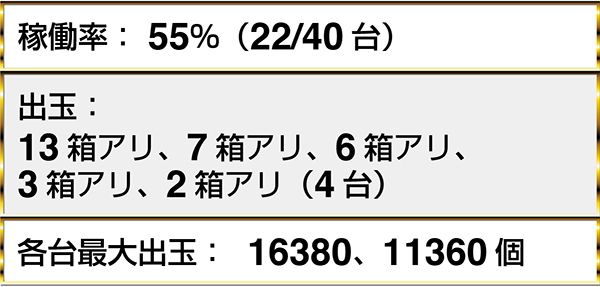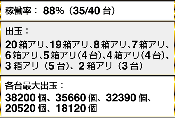 ・『CRルパン三世〜LAST GOLD〜』の1台が獲得出玉20000個over