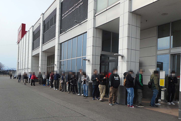 この日の開店前には約50名が集合しており、整列場所は明るい雰囲気に包まれていた。談笑をしつつオープンを待っているプレイヤーたちの様子がホールへの期待の大きさをあらわしていたように思う。