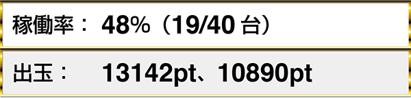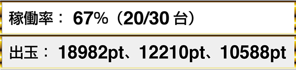 『ぱちんこCR真・北斗無双』や『CR大海物語4』、『CRスーパー海物語IN沖縄4』など、5機種以上で10000ptオーバーのデータがみられた。