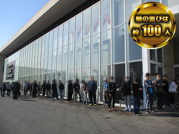 この日の開店前には約100名のプレイヤーが集合しており、整列場所は明るい雰囲気に包まれていた。イキイキとした表情でオープンを待つ姿が期待の大きさをあらわしていたように思う。