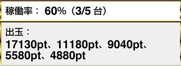 『ぱちんこCR真・北斗無双』と『CRスーパー海物語IN沖縄4』において、20000pt以上のデータを確認。