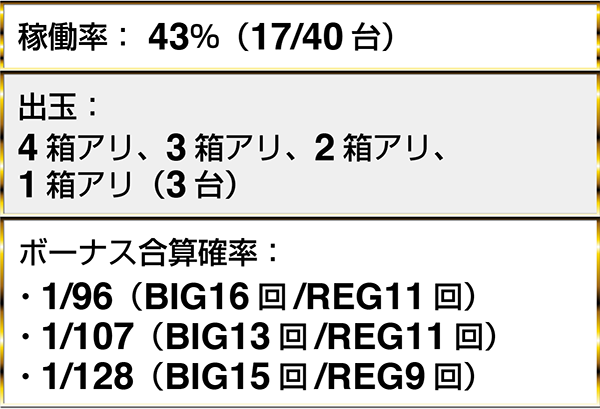 『沖ドキ!-30』や9割以上が稼働していた『バジリスク~甲賀忍法帖~絆』でも、獲得出玉が2箱以上のプレイヤーを目にしている。