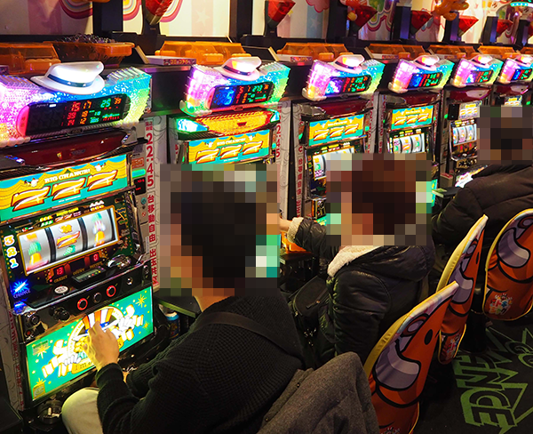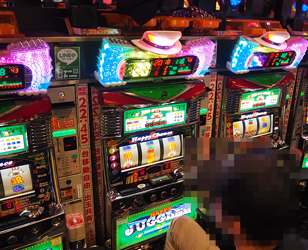 ホール全体を探ったなかでも、『マイジャグラーⅢ』や『マイジャグラーⅣ』を筆頭に、ジャグラーシリーズで目にした光景がインパクト抜群!