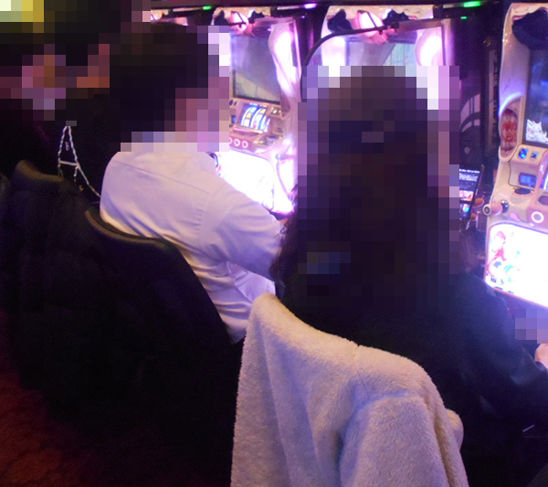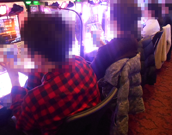 たくさんの場所が活気づいているホール内をぐるりと一周したあとに再び訪れても、稼働率の高さと盛り上がりの大きさが変わっていなかった。いくつもの見応えのあるシーンに出会うことができたが、「SLOT魔法少女まどか☆マギカ2」でみられた鮮やかな光景がもっとも印象に残っている。